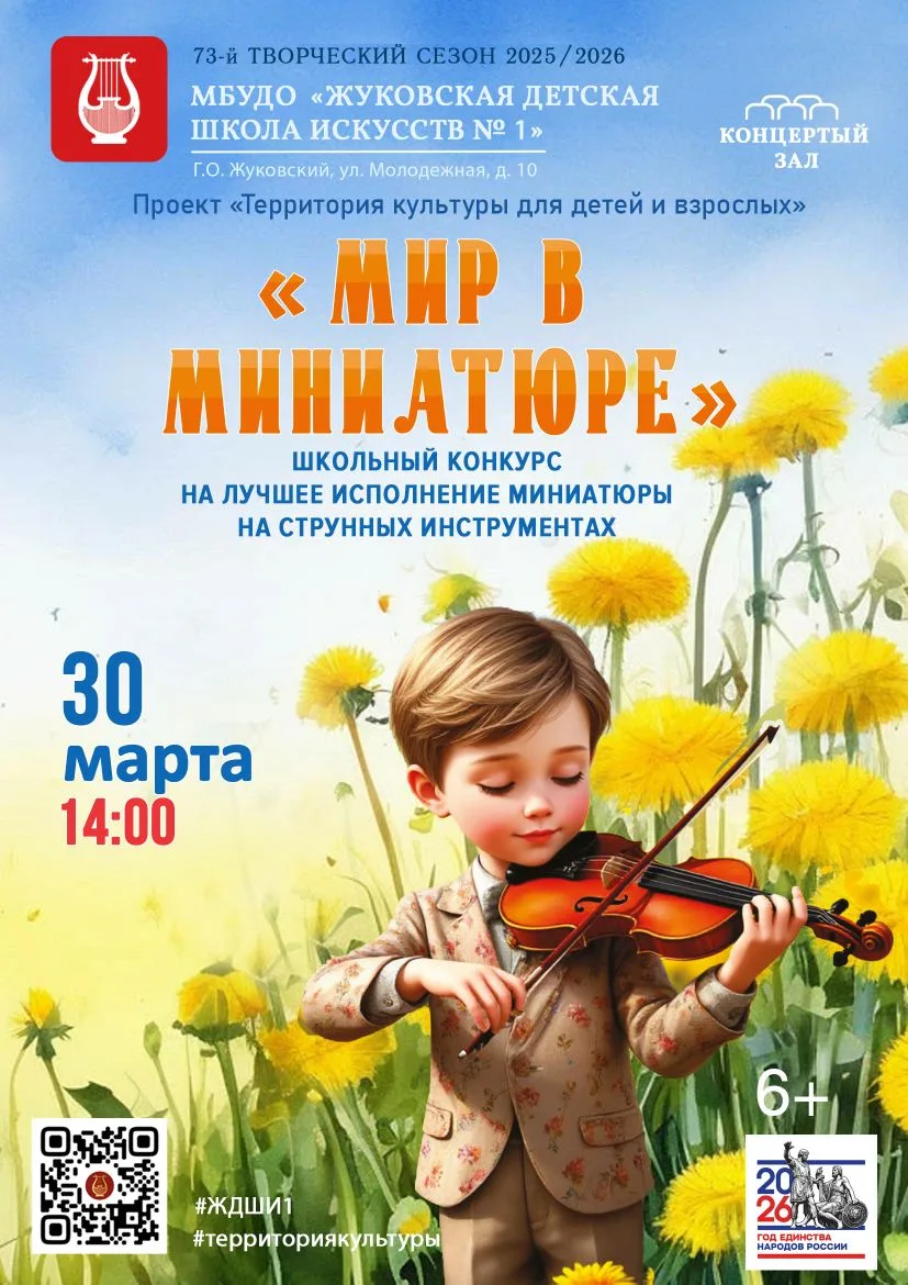 Школьный конкурс «МИР В МИНИАТЮРЕ» на лучшее исполнение миниатюры на струнных инструментах состоится в Жуковской детской школы искусств № 1