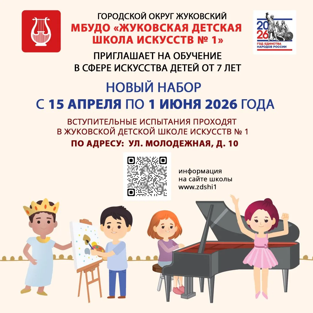 С 15 АПРЕЛЯ НАЧИНАЕТСЯ ПРИЕМ ЗАЯВЛЕНИЙ НА ОБУЧЕНИЕ В МБУДО "ЖУКОВСКАЯ ДЕТСКАЯ ШКОЛА ИСКУССТВ № 1"