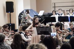 В концертном зале школы для любителей искусства выступил Молодежный симфонический оркестр ЖДШИ № 1. Дирижёр - Иван Сергеевич Манько.