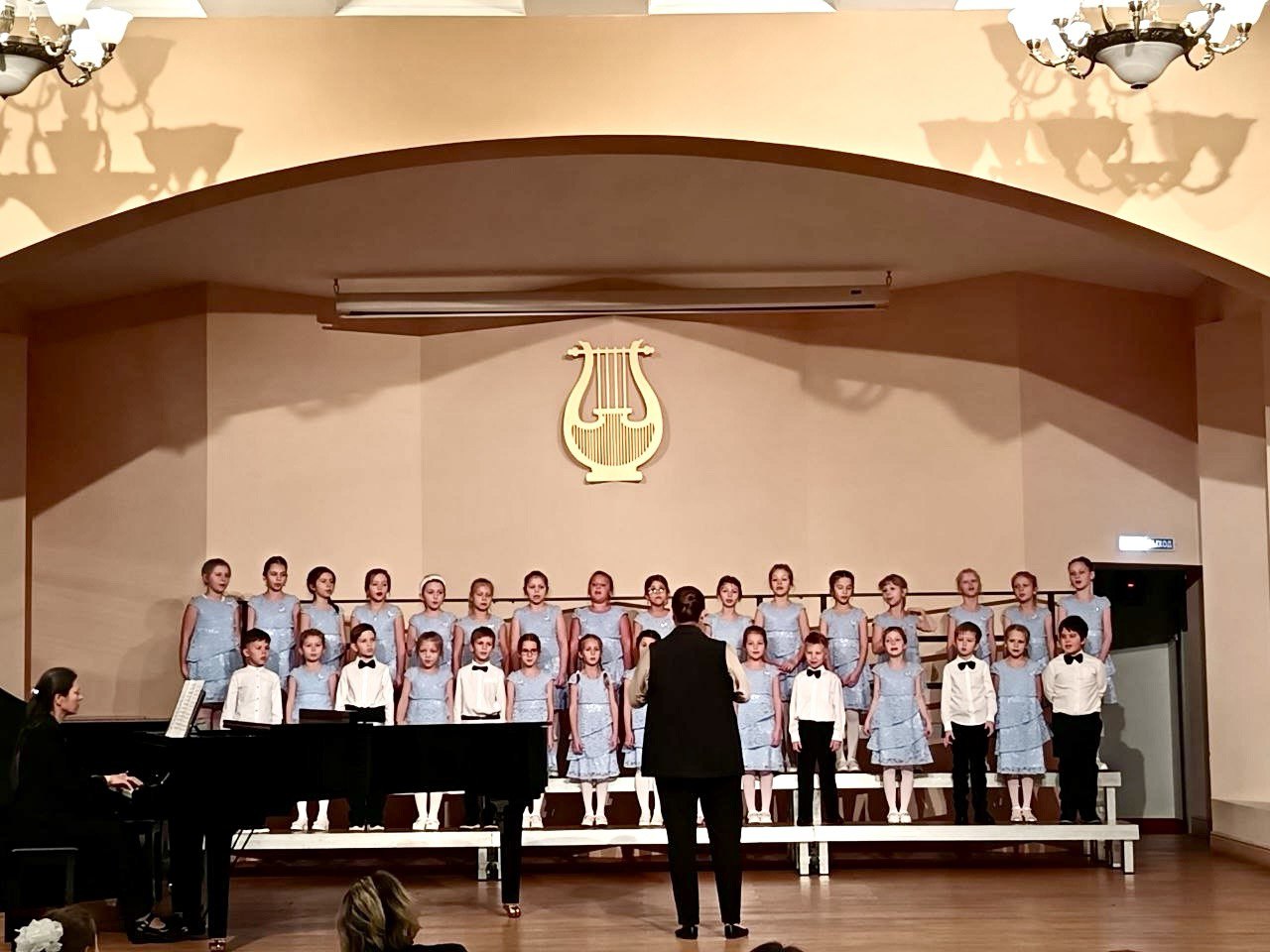 Маленькие музыканты впервые вышли на сцену Концертного зала школы и показали, чему уже научились.По традиции школы, хор первоклассников провел свой первый концерт, а юные пианисты со всем старанием сыграли пьесы для публики.