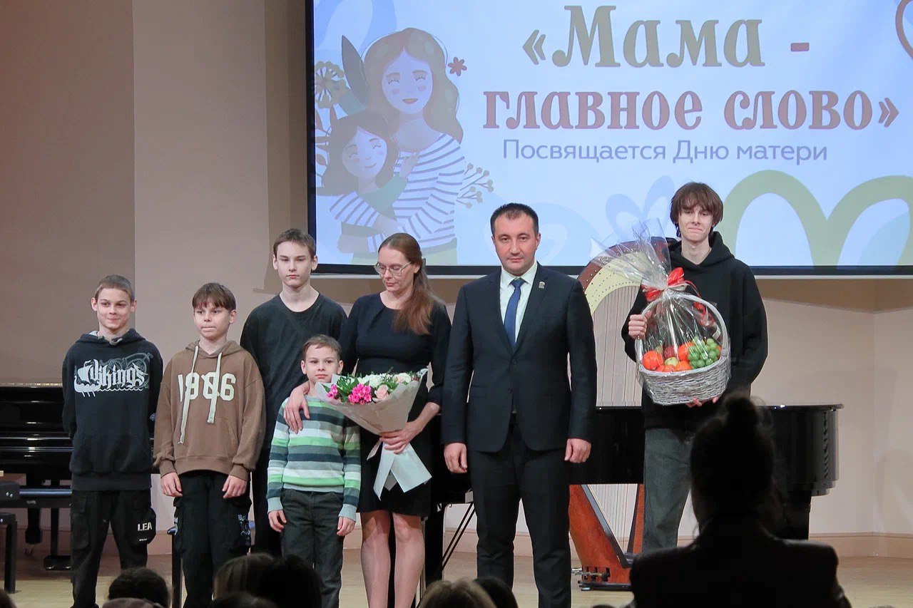 Глава города поздравил всех мам в зале, директора школы – Елену Владимировну Меденцеву, а также многодетную семью Ефремовых и Утину Наталью Викторовну – маму Героя России, погибшего на СВО.