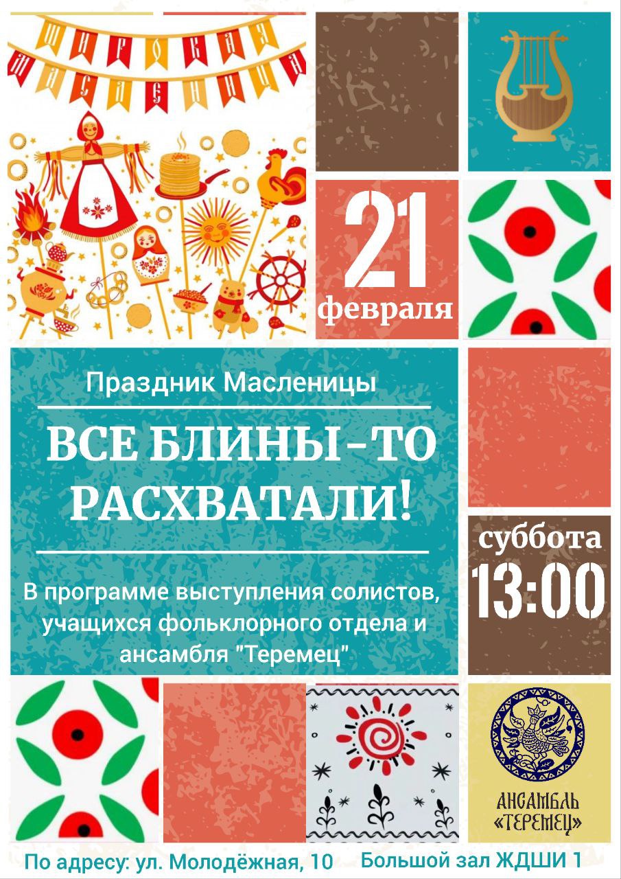 Праздник Масленицы ВСЕ БЛИНЫ-ТО РАСХВАТАЛИ!» пройдет в ЖДШИ № 1