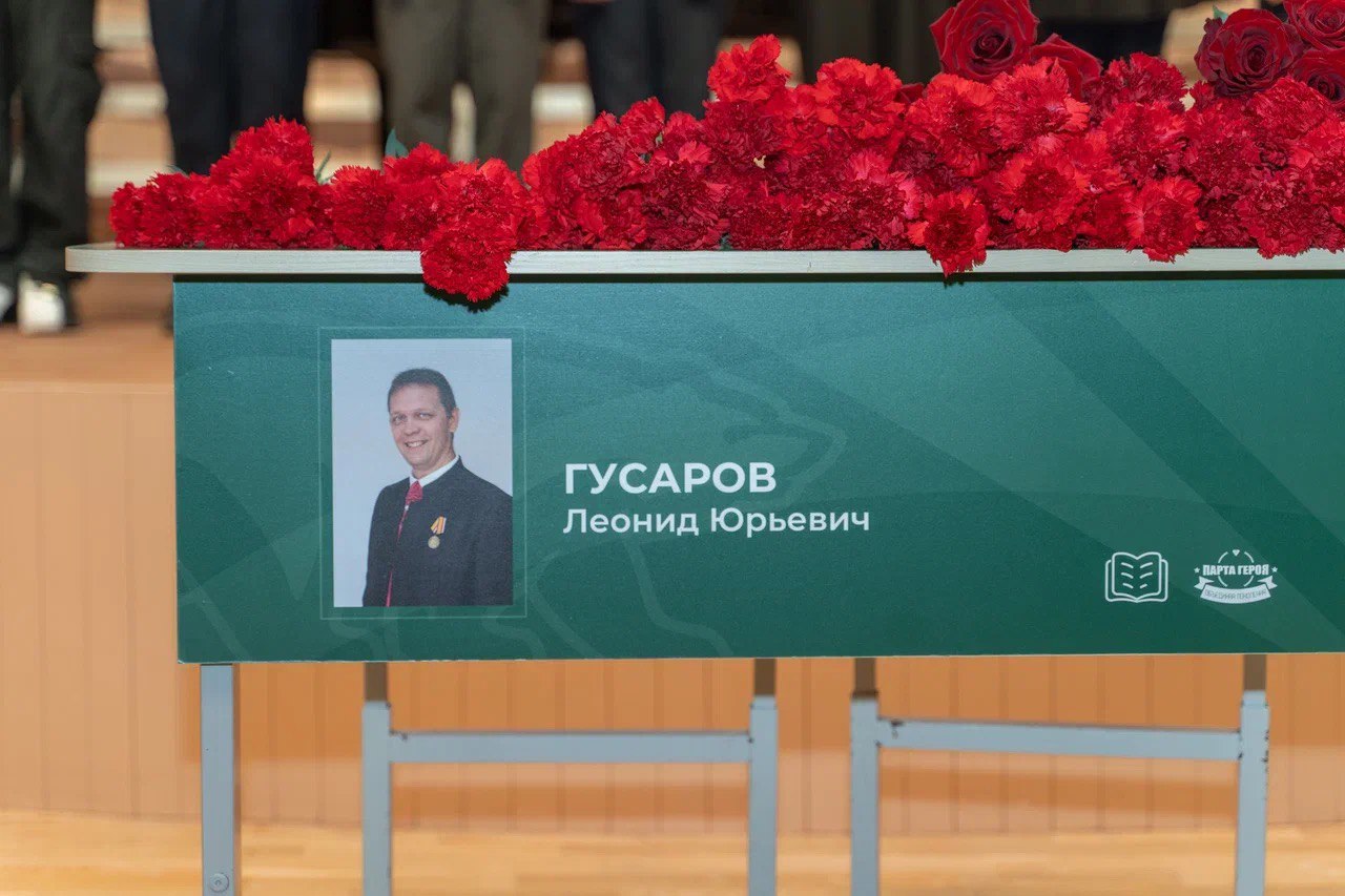 В память о Леониде Гусарове в нашей школе установлена Парта Героя.