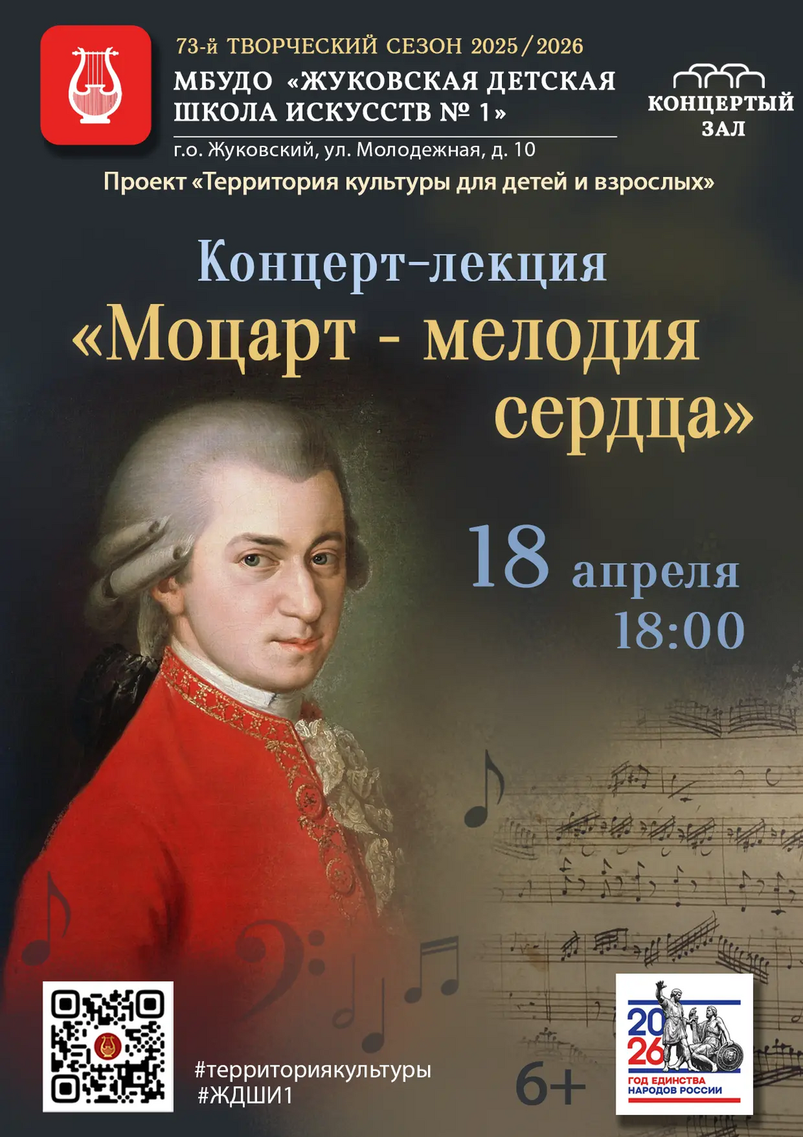 Концерт-лекция «Моцарт – мелодия сердца» состоится в Концертном зале Жуковской детской школы искусств № 1