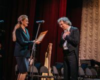 Поздравить музыкантов оркестра и дирижёра, заслуженного артиста России Дениса Кирпанёва пришли заместители главы г. о. Жуковский Алла Дунаевич и Андрей Урусов.